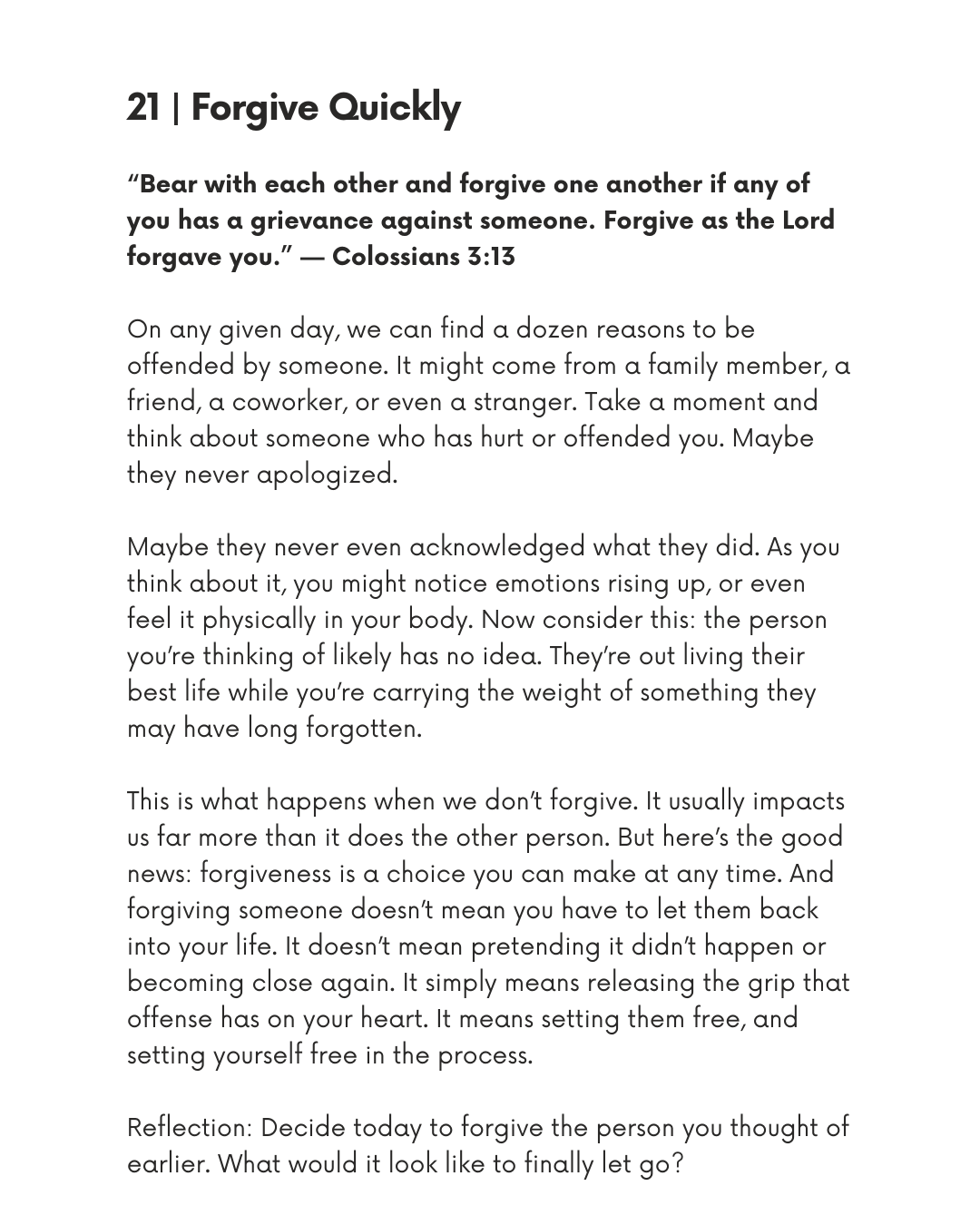 “This devotional is one of the best ones I’ve ever read! It’s clear, concise, to the point, and practical! You can start your day with these encouraging messages and feel the impact of the message throughout the day! I love how the author encourages you to reflect on the message and see how you can apply the message to your everyday life.